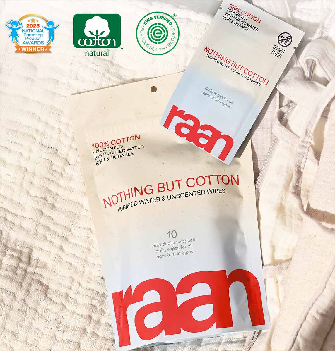 100% USA grown cotton wipe with 99% purified water and 5 clean ingredients including organic aloe. Grown through regenerative farming, our cotton preserves its naturally soothing waxes and oils, giving each wipe exceptional softness for sensitive skin while still cleaning effectively.