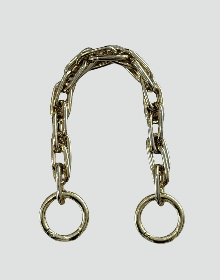 Convert any bag to a chain top handle with our Doppio Link Chain Strap accessory. This 12" long chain was designed for our Ring Bags, but is compatible any bag with D-rings or O-rings.