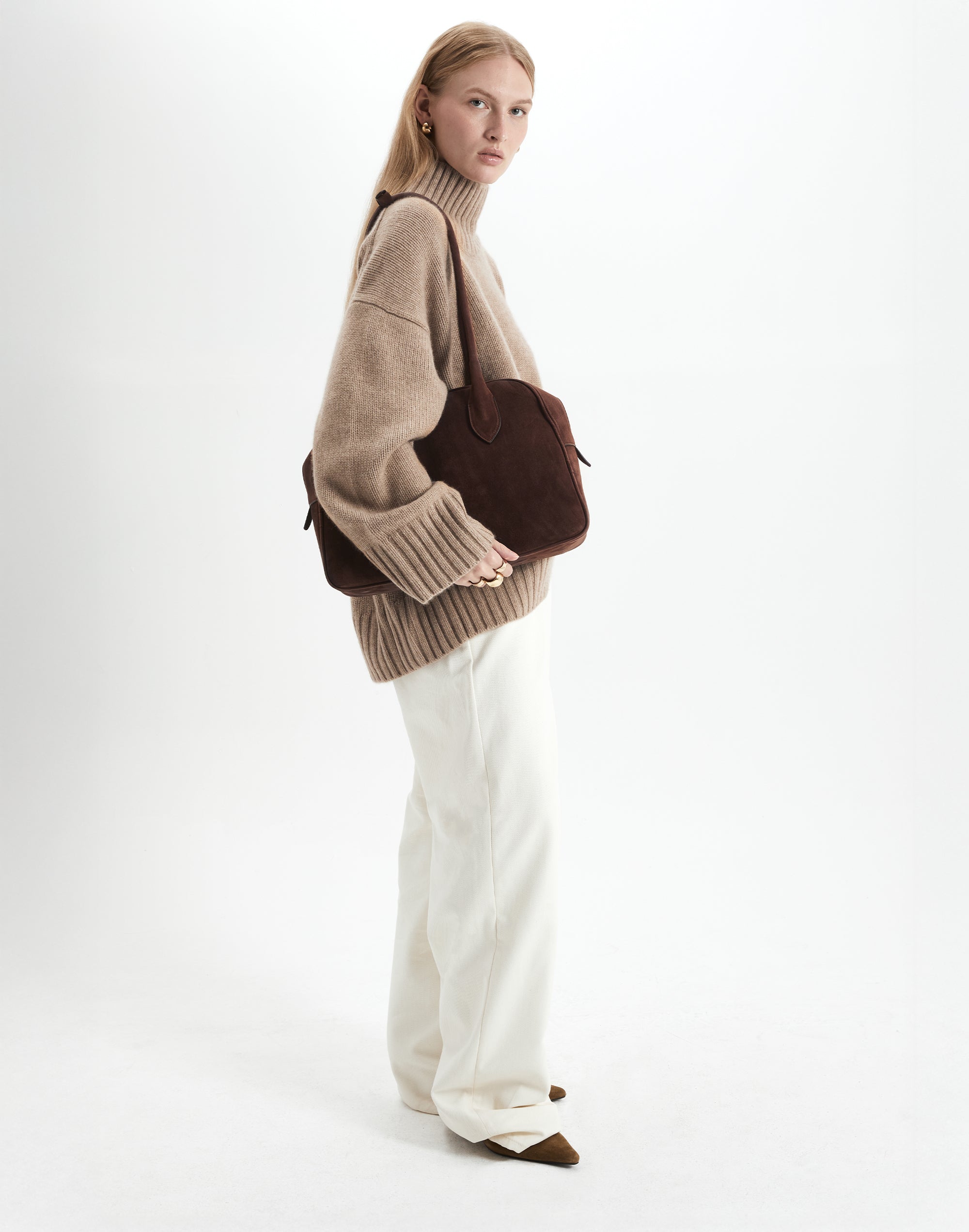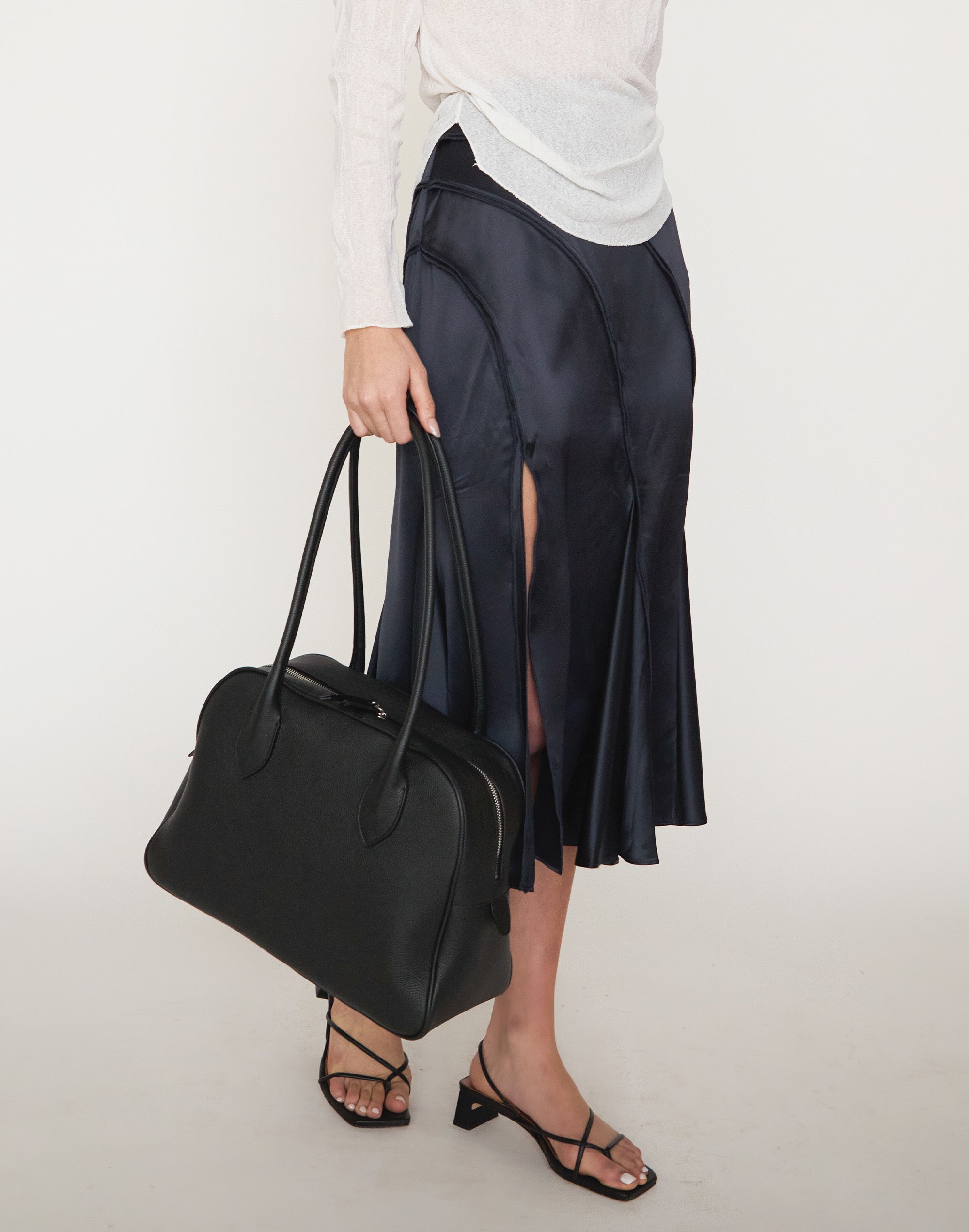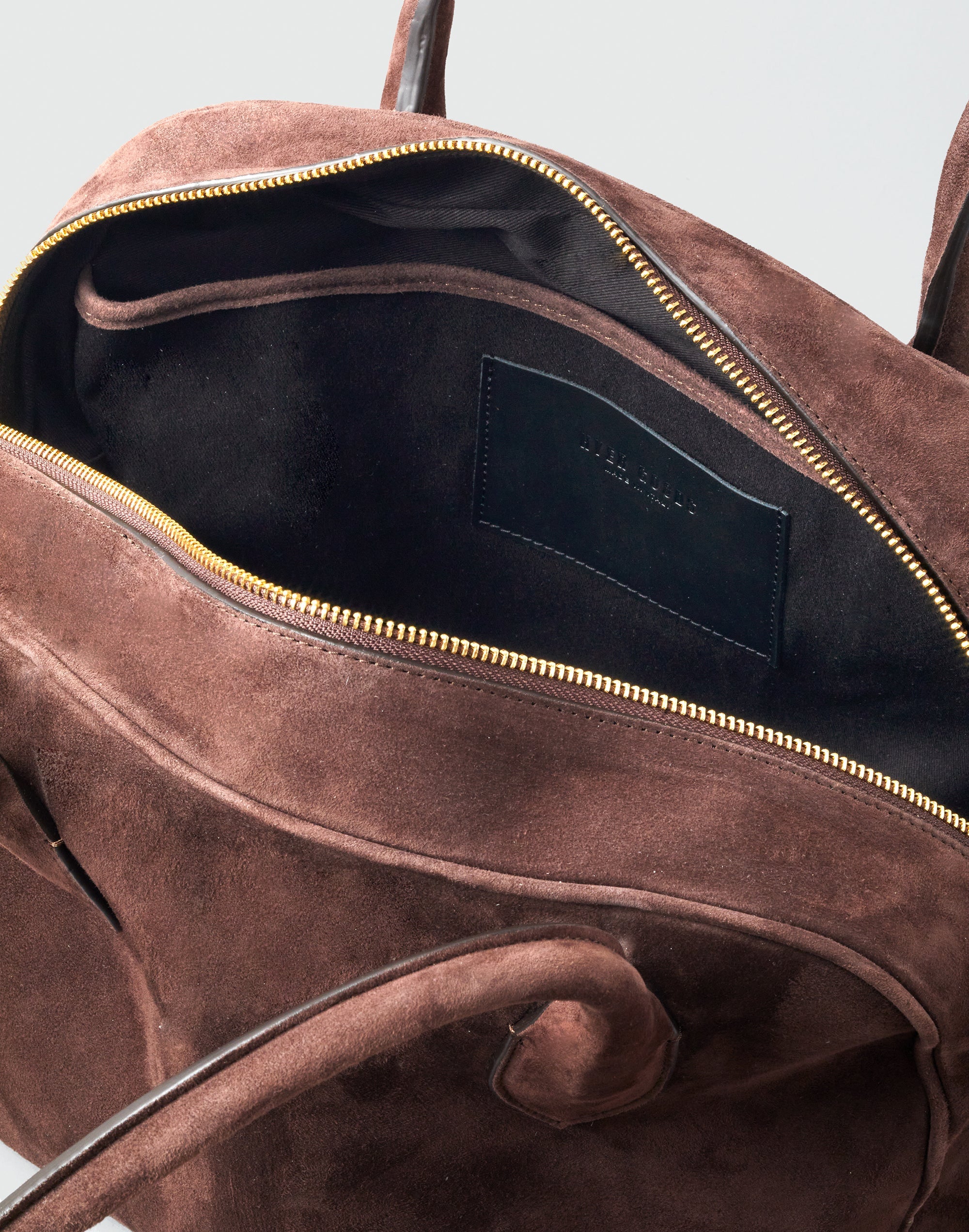 Sleek yet sturdy, the Autostrada is built for motion. Crafted in a soft, supple tumbled leather or luscious goat suede with rolled soft leather straps, its durable, lightweight construction makes it the perfect work bag, travel tote, or daily carryall.