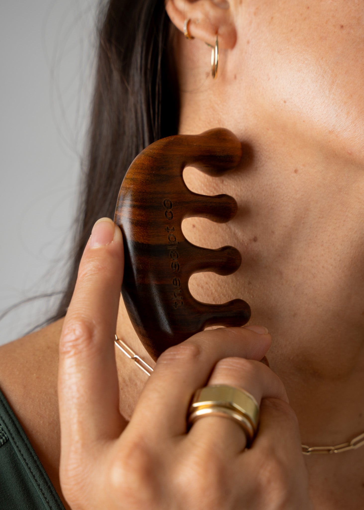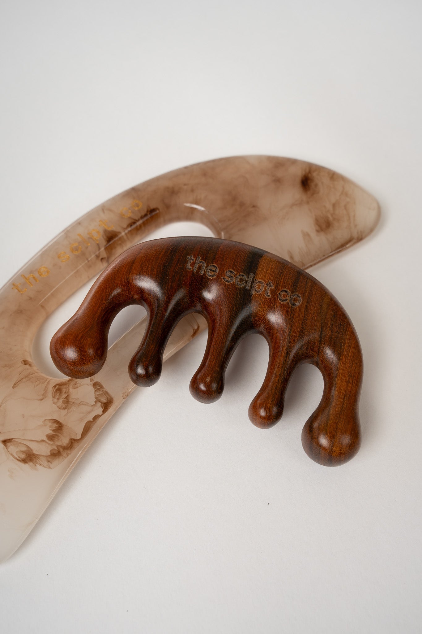 Enhance your wellness routine with this Gua Sha Body Set. Designed to stimulate energy flow throughout the body, release muscle tension and encourage lymphatic drainage. You will experience a more relaxed and refreshed self integrating this ritual into your routine. This set includes a wooden comb and eco-resin body fascia releaser. A lightweight combo to focus on multiple angles of the body.