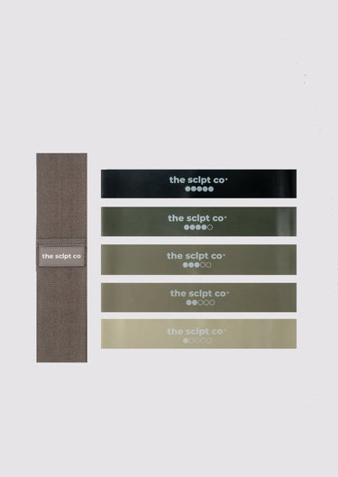 Sculpt and tone with this 6 piece mini loop band set. A unique combination of one fabric resistance band and five natural latex resistances. The perfect combo pack for traveling and bringing with you to the gym.