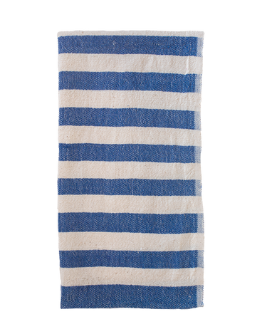 This best-selling, 14” x 28” chambray stripe hand towel is 100% organic cotton & can find many uses around the home. The texture, handmade quality, and 1” horizontal natural stripe, set this hand towel apart. Spun, dyed (AZO free), & created by artisan partners.