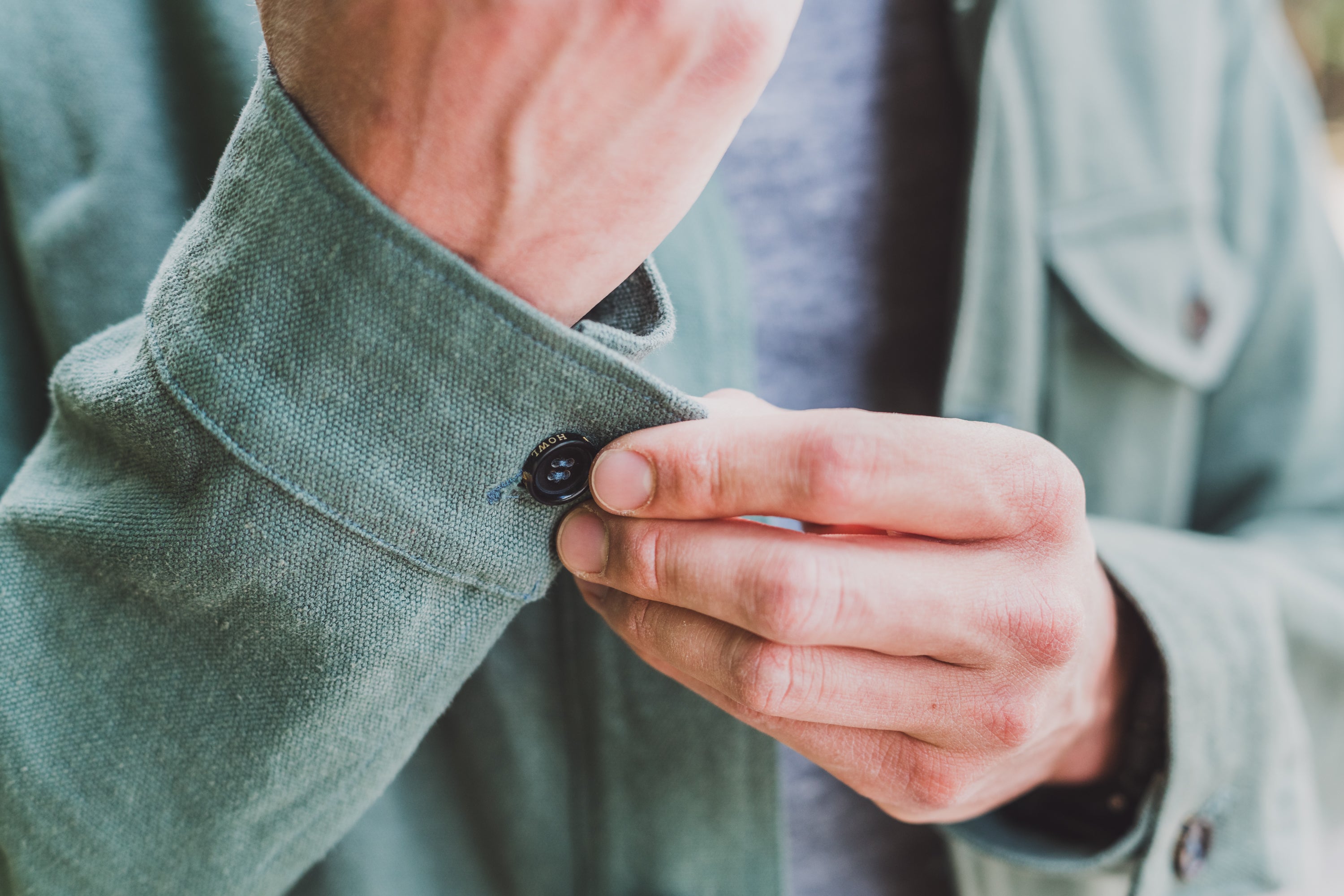With 14-oz. organic hemp / cotton canvas, custom Howl buffalo horn buttons, and one custom ceramic button from Mud Lake Studios