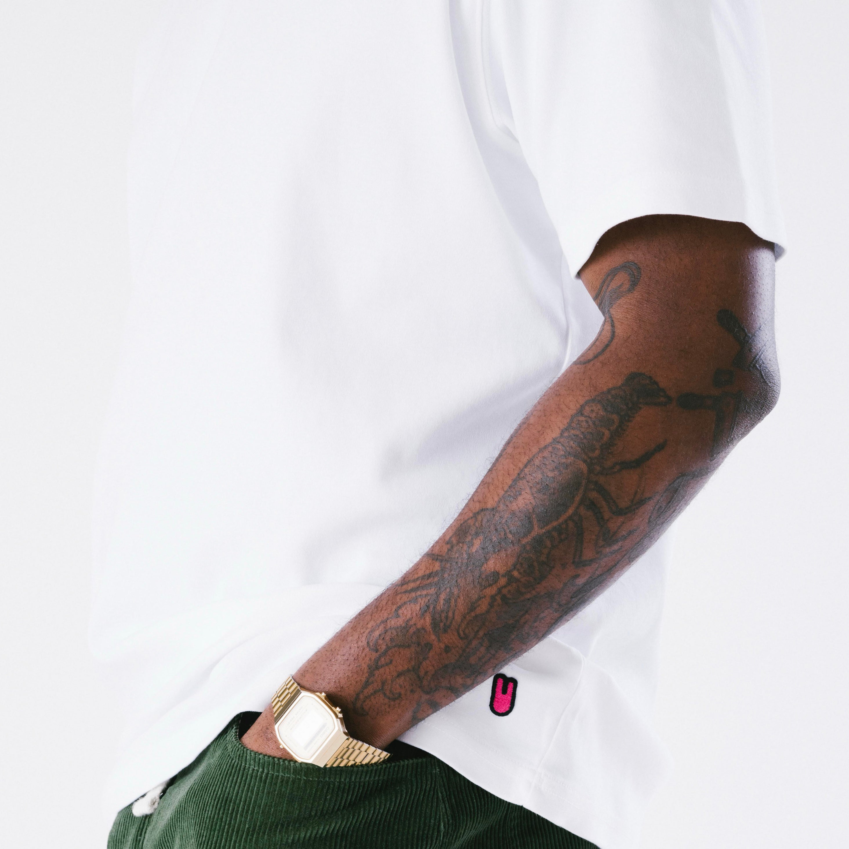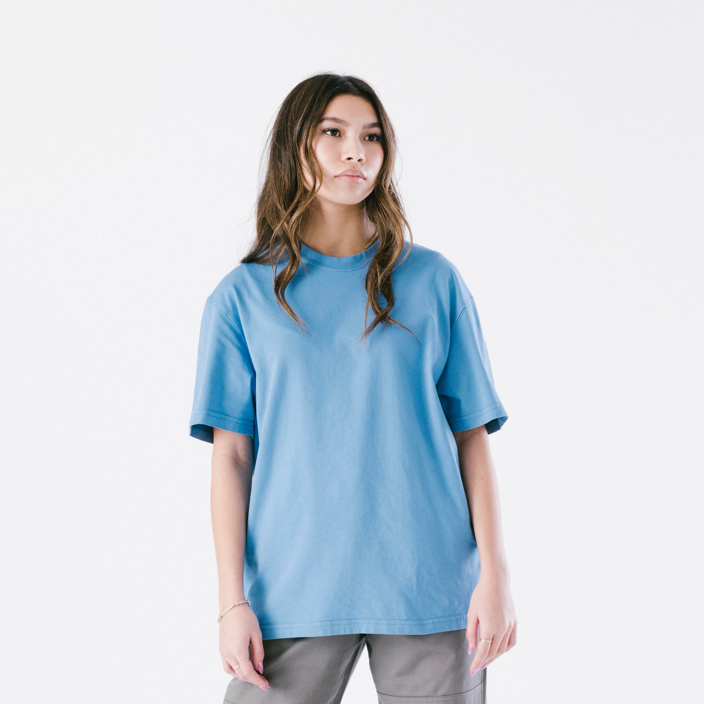 Our Lux Tee is far from minimal, with a luxurious hand feel and drape that is unparalleled in the industry. Made with thick, plush 8oz cotton interlock fabric for max quality and comfort—and nothing more.