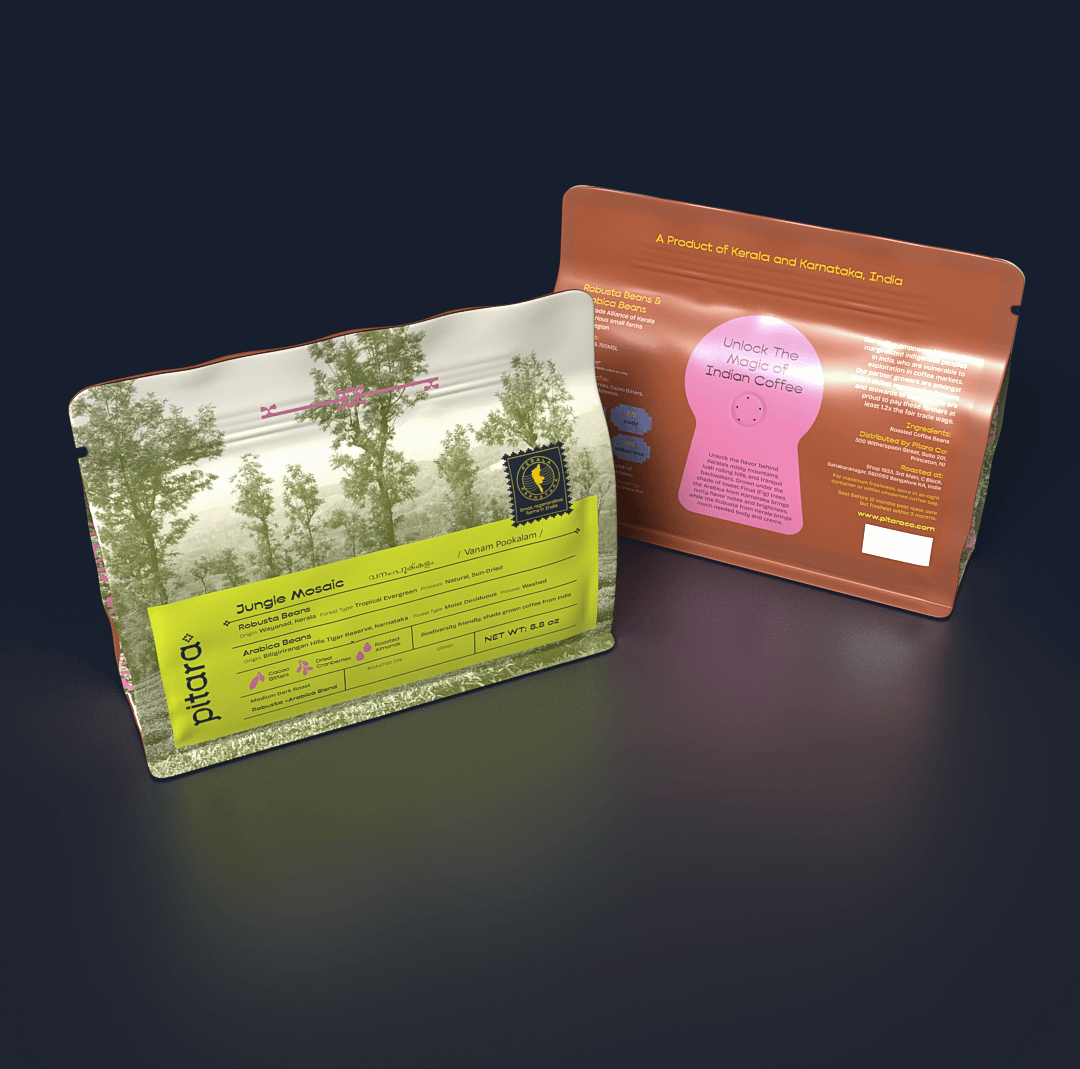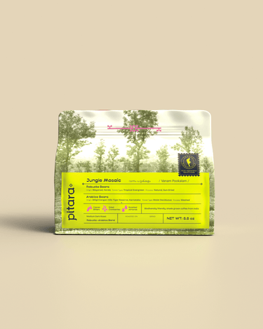 Behind the name: We’ve translated Jungle Mosaic to “Vanam Pookalam” in Malayalam, the predominant language of Kerala, India. Vanam means forest. Pookalam refers to a beautiful form of artwork made entirely of flowers and petals that Kerala is famous for. It’s like rangoli* but made entirely of flowers rather than colored powder. Vanam Pookalam then is our vibrant blend of shade-grown coffee beans from both evergreen and moist deciduous forests, of both Arabica and Robusta beans - a mosaic of majestic forests.