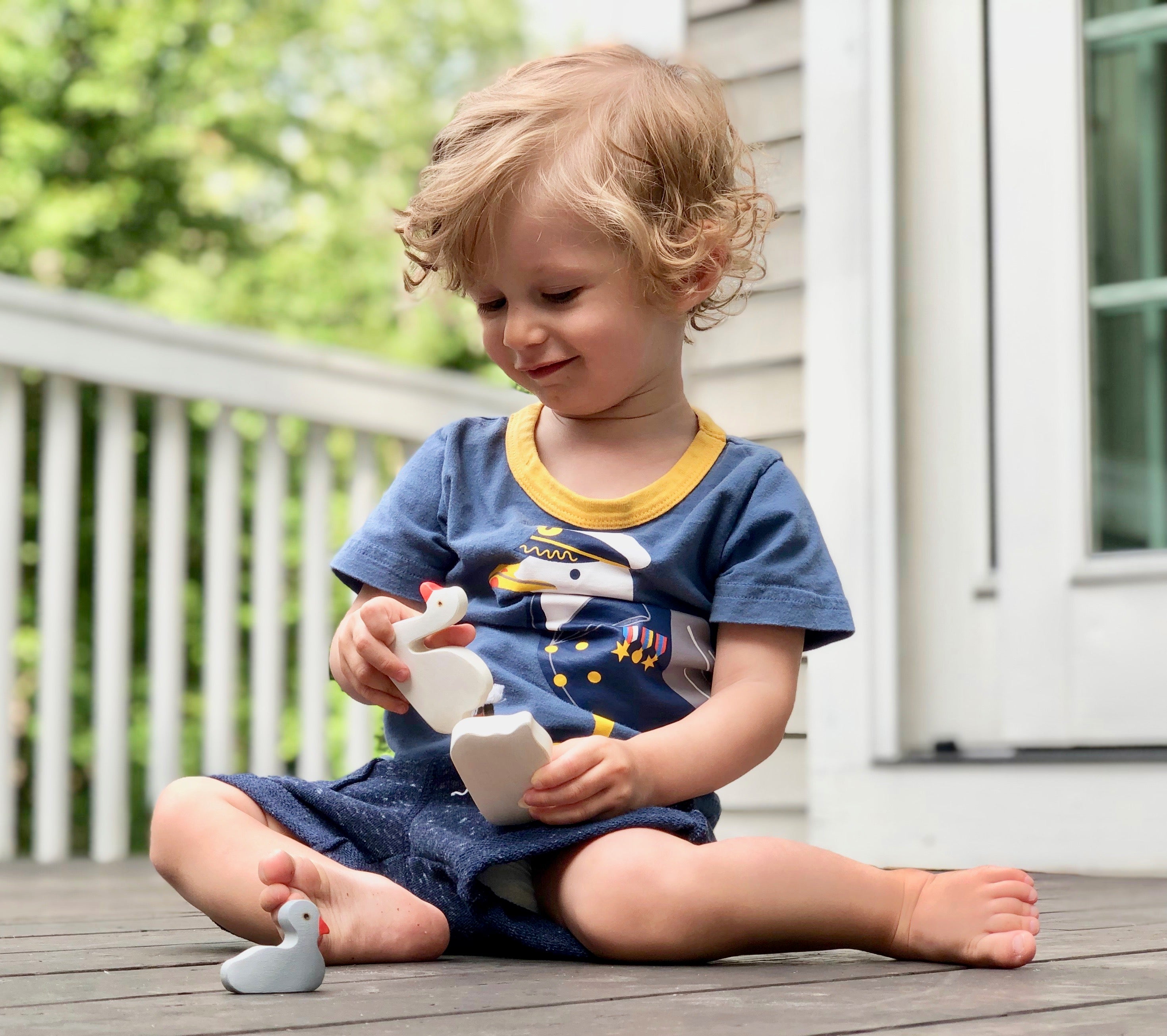 While playing with natural wooden toys children touch and feel natural materials and as a result improve tactility and fine motor skills. It promotes creativity, imagination. social and emotional skills. Improving visual-spatial reasoning, problem-solving skills, attention to details. Increase productivity and creative thinking ability.