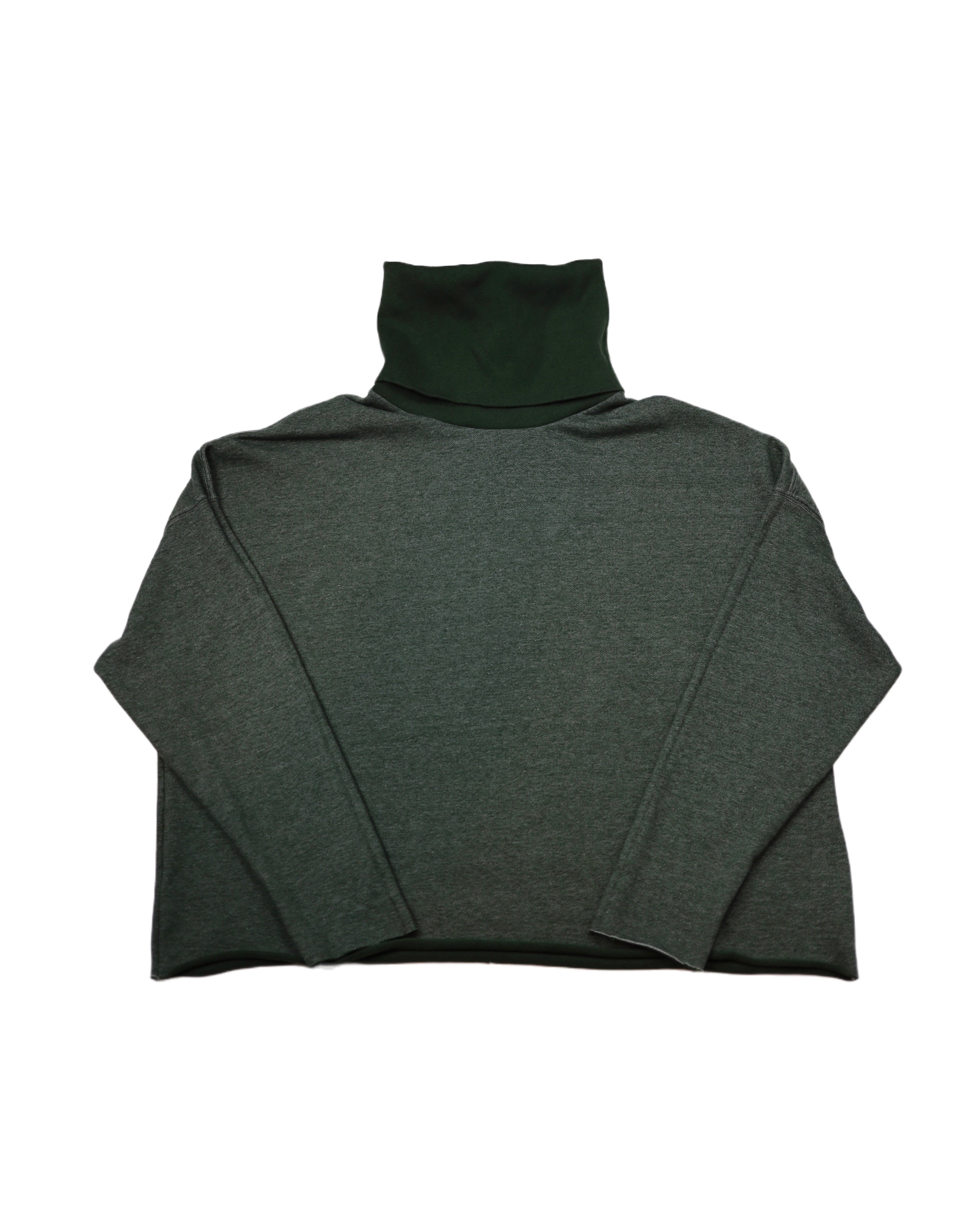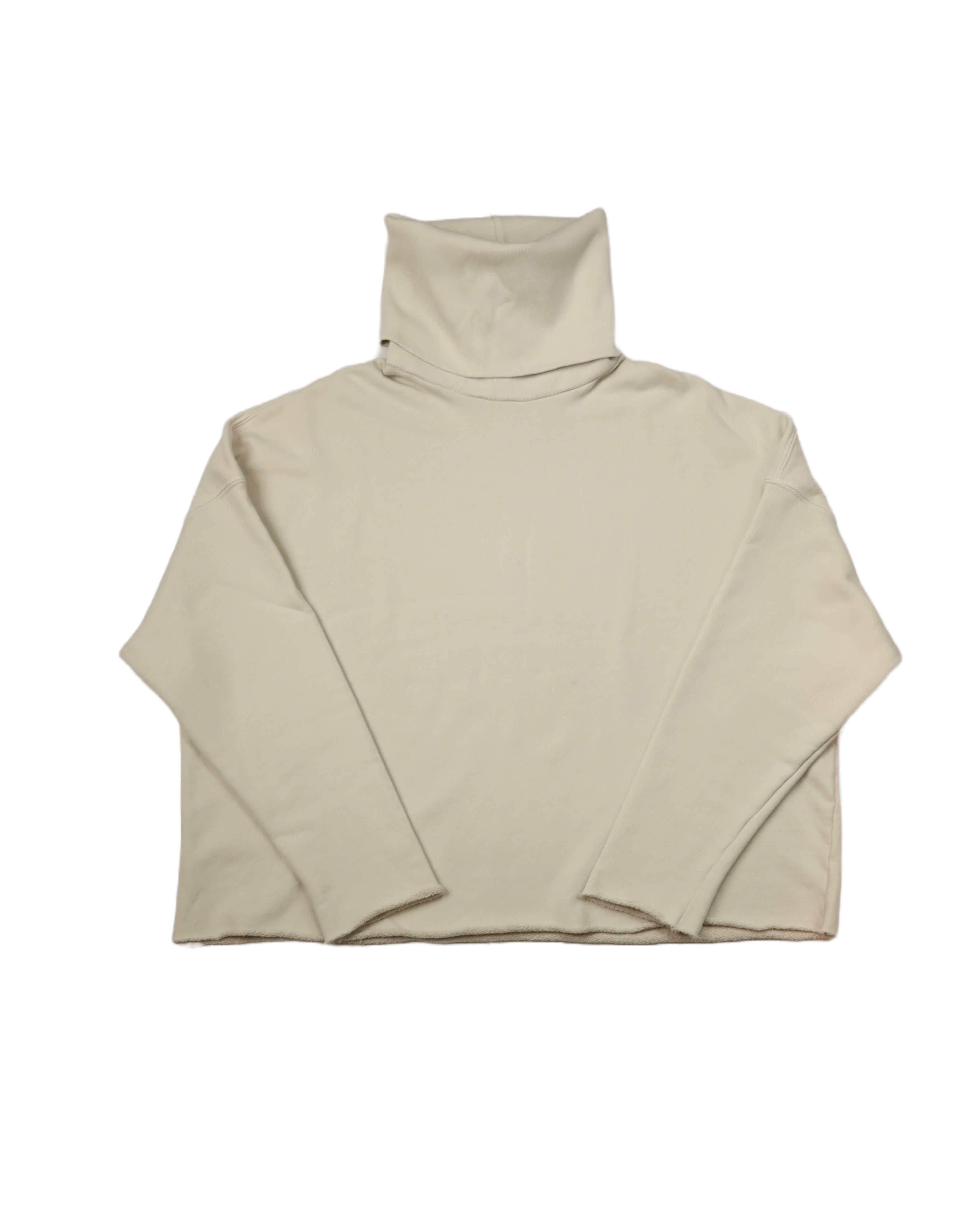 Soft French terry cotton knit with oversized boxy shoulder, extra long turtleneck and oversized waist.