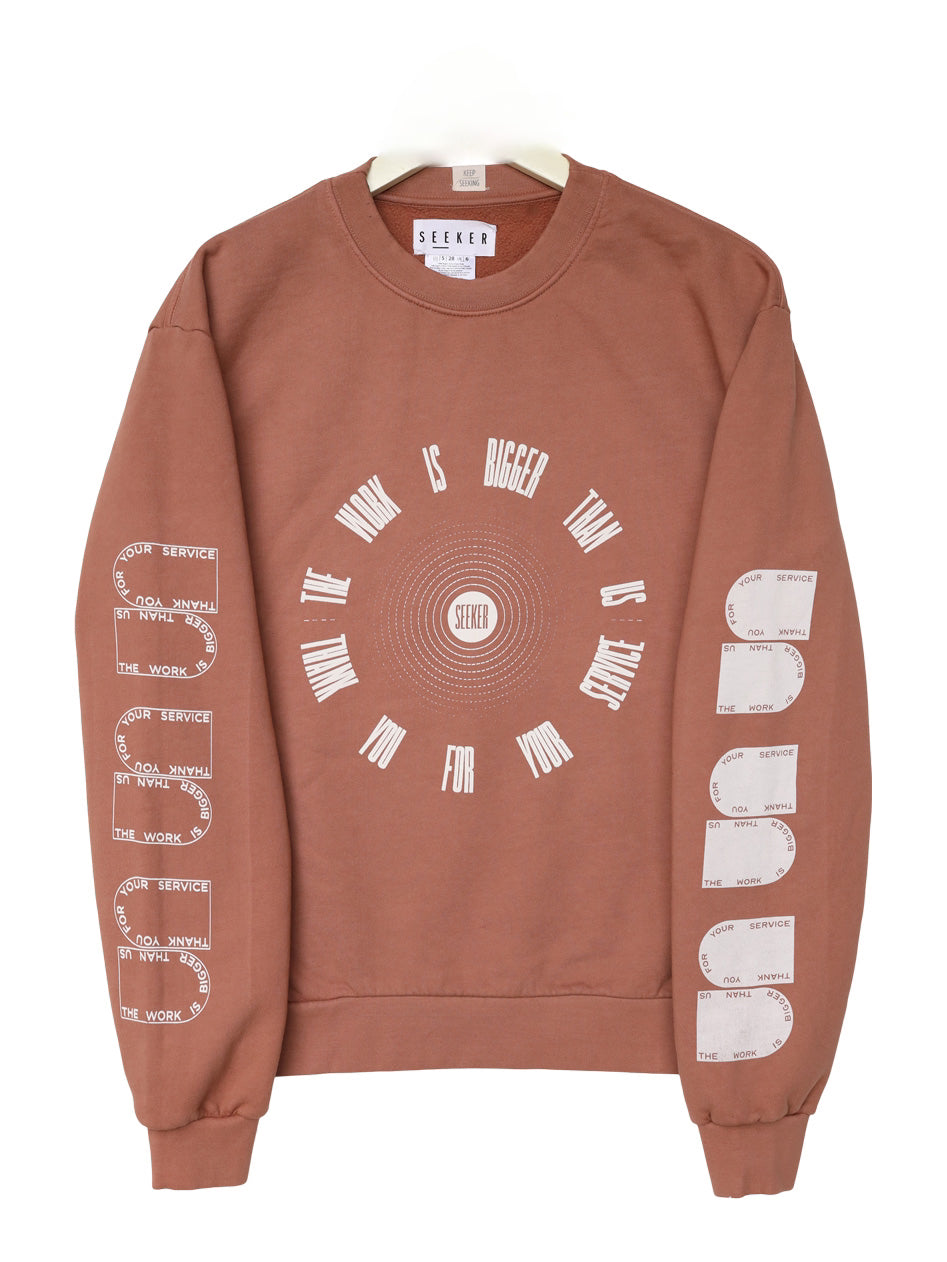 Cut & sewn into a relaxed fit, this crewneck sweatshirt is designed to be worn slightly oversized with the Seeker logo flag label located on the neck. This crew goes anywhere, pairs with nearly anything and feels like a warm hug when you put it on.