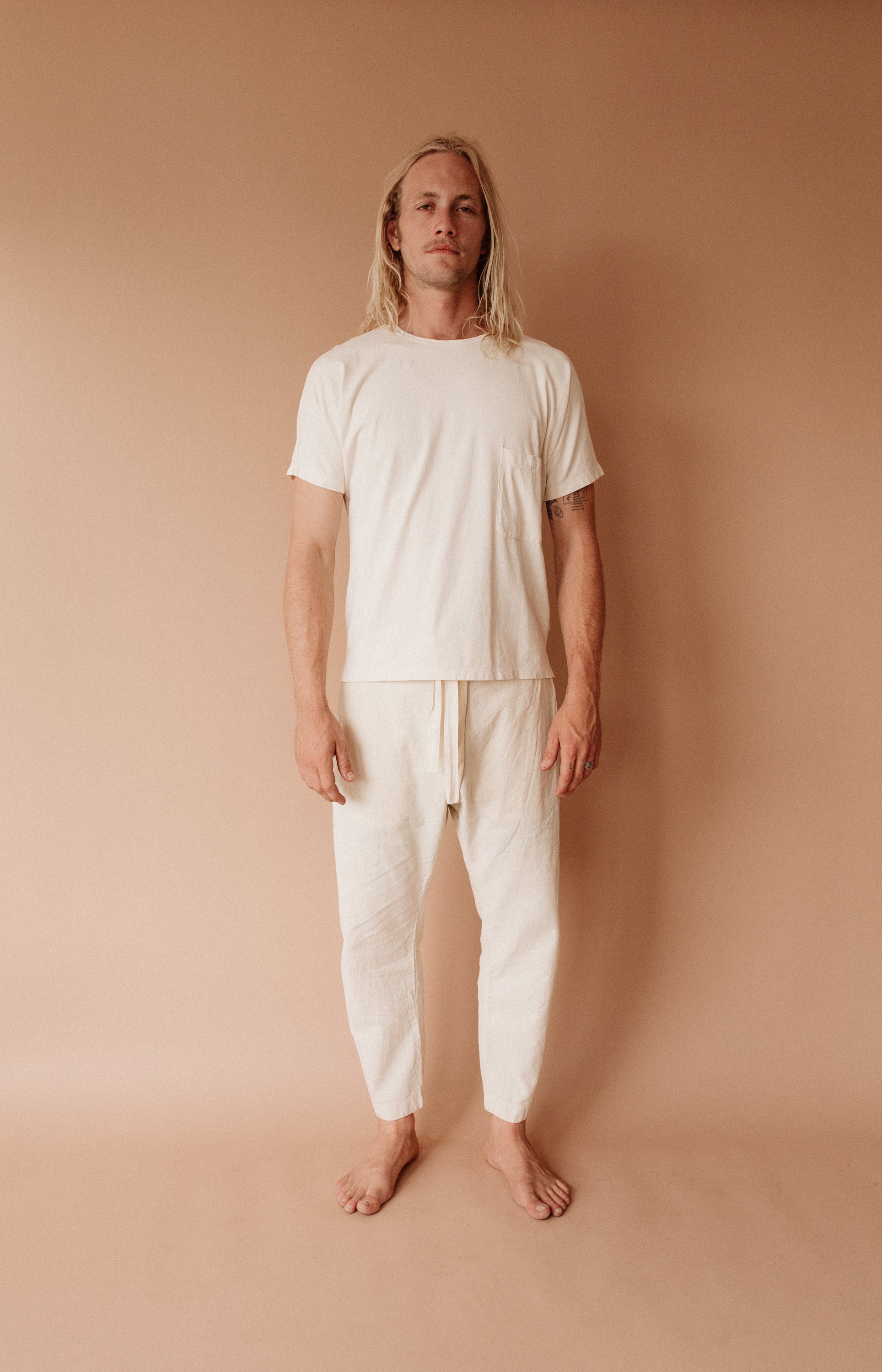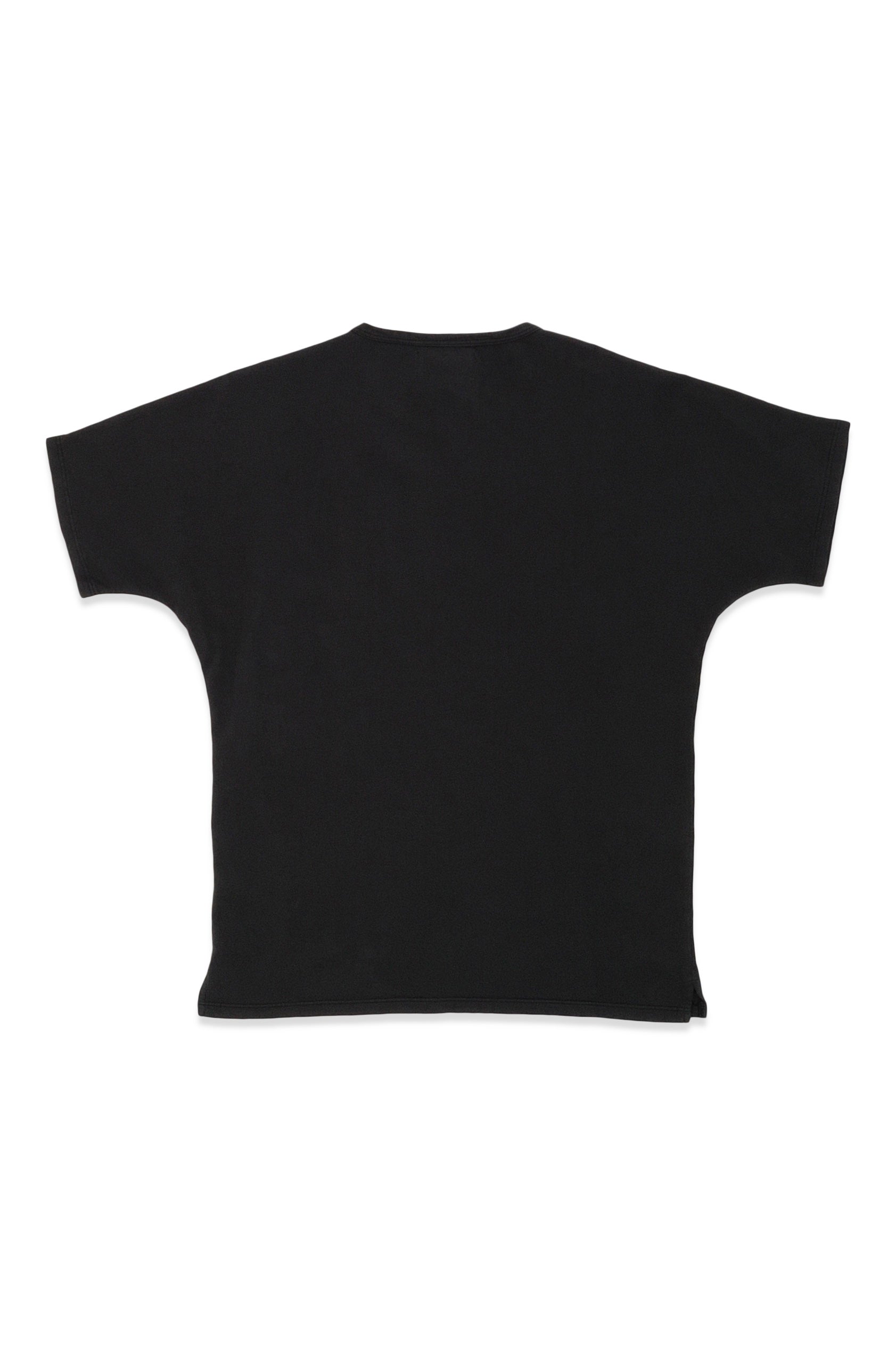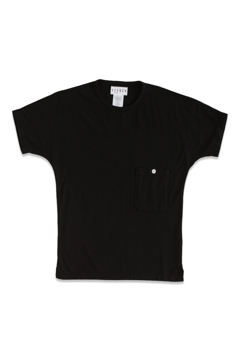 Soft heavyweight cotton jersey knit with dolman shoulder and button pocket.