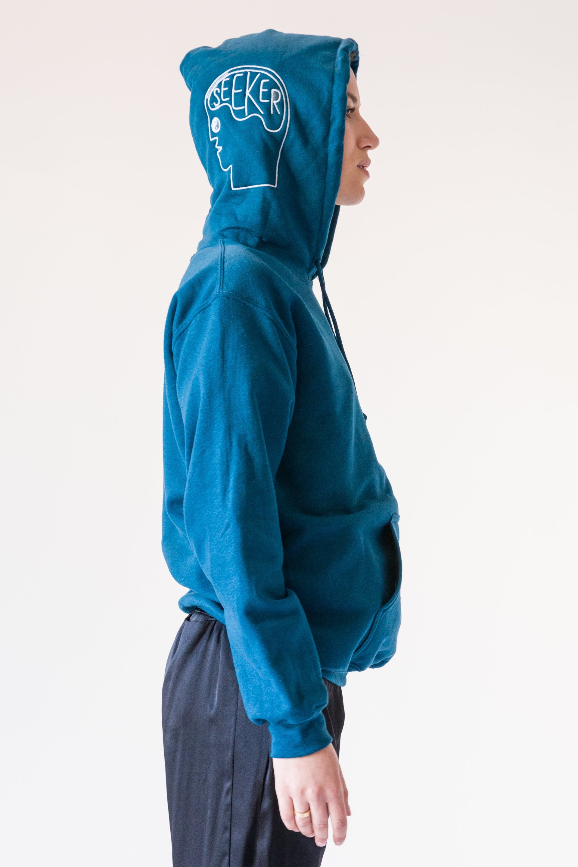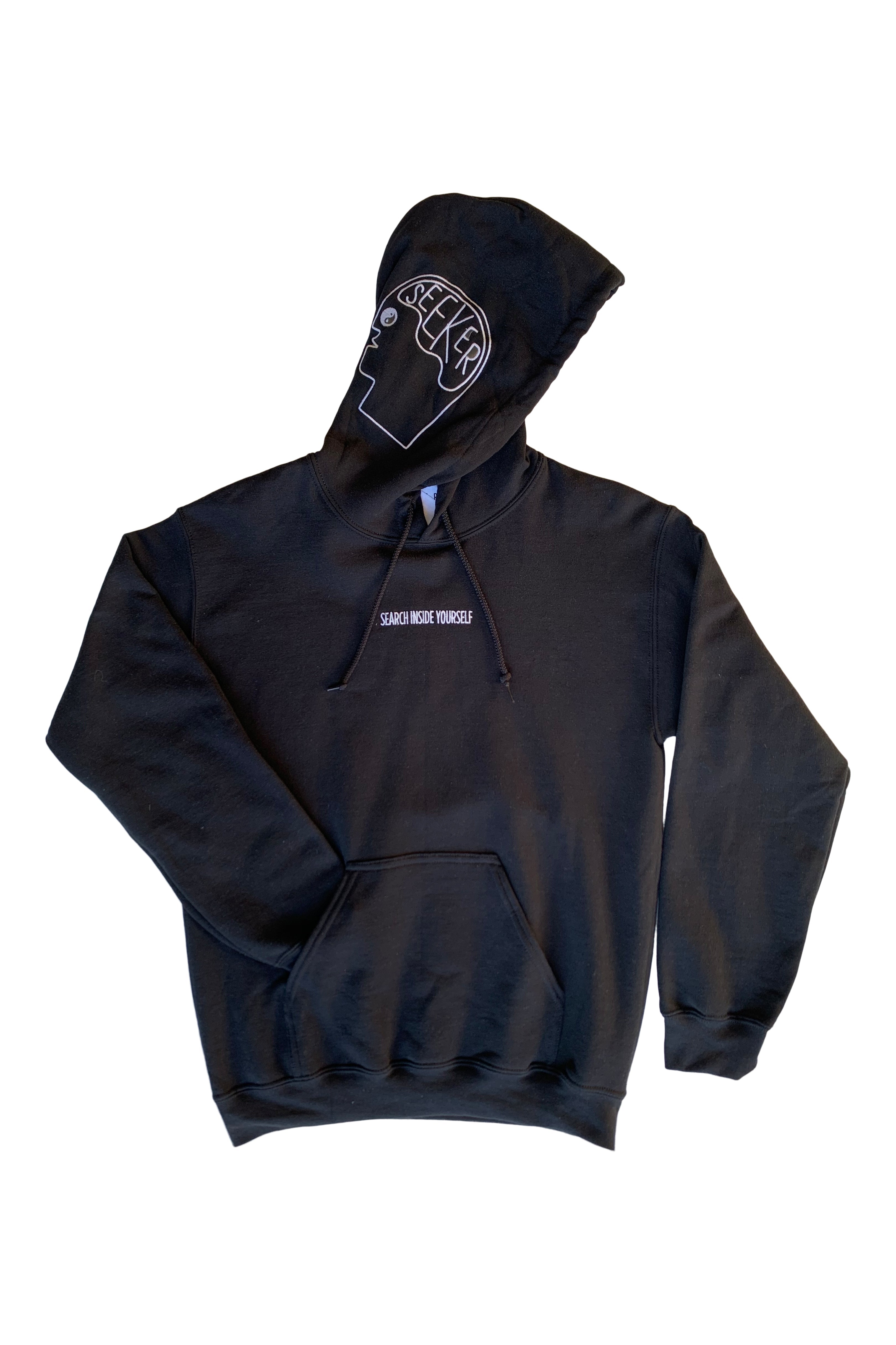 Features our seasonal "Search inside yourself" logo embroidered on front and "Seeker Brain" logo embroidered onto hood.