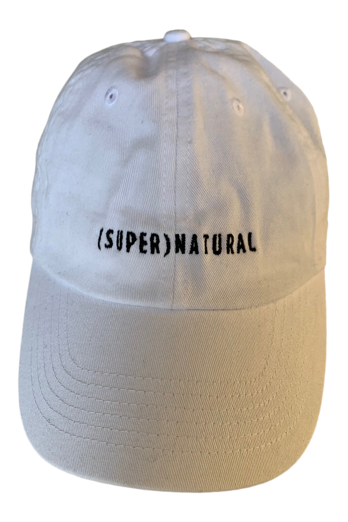 100% cotton 6-panel cap with "(SUPER)NATURAL" stitched across the front.