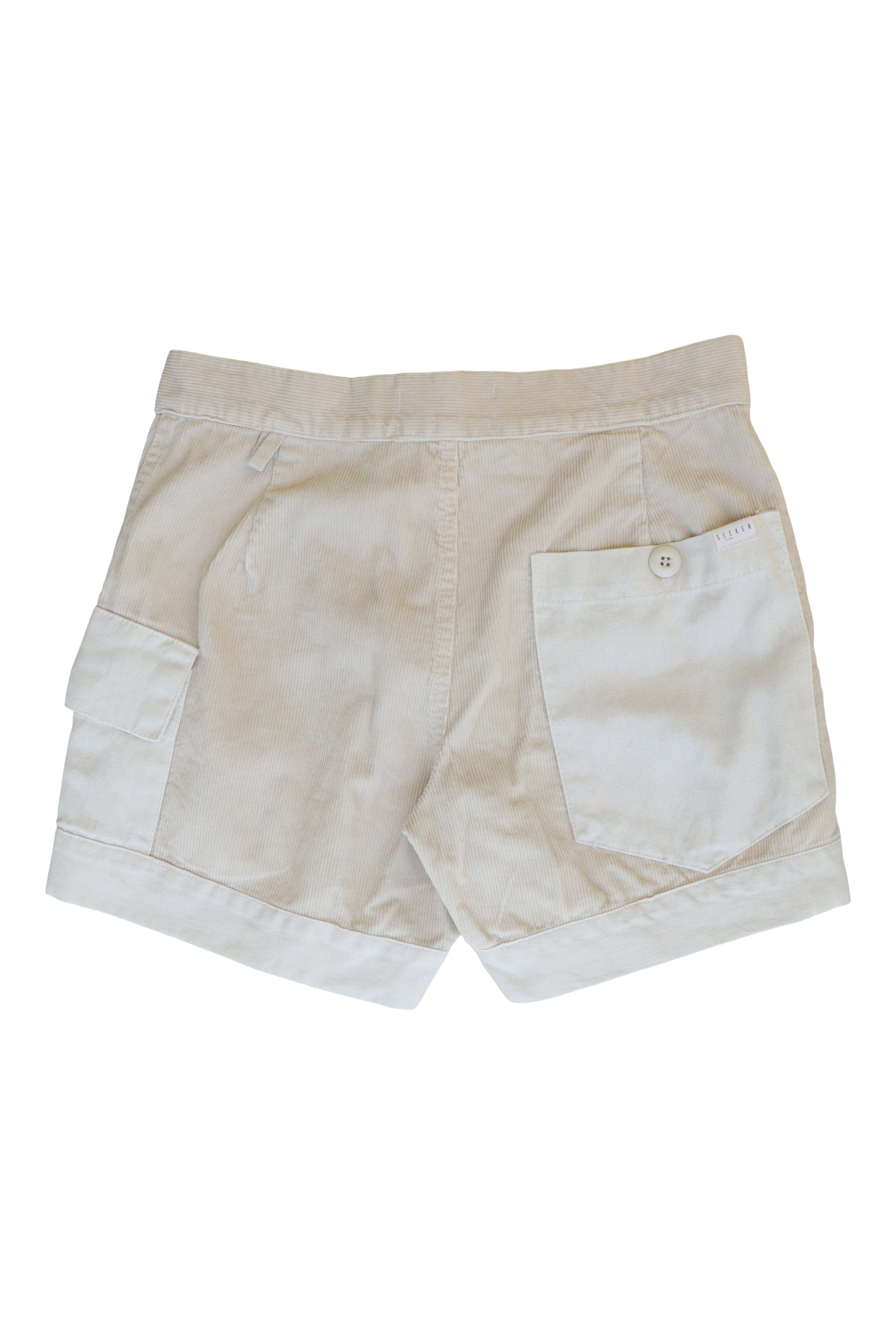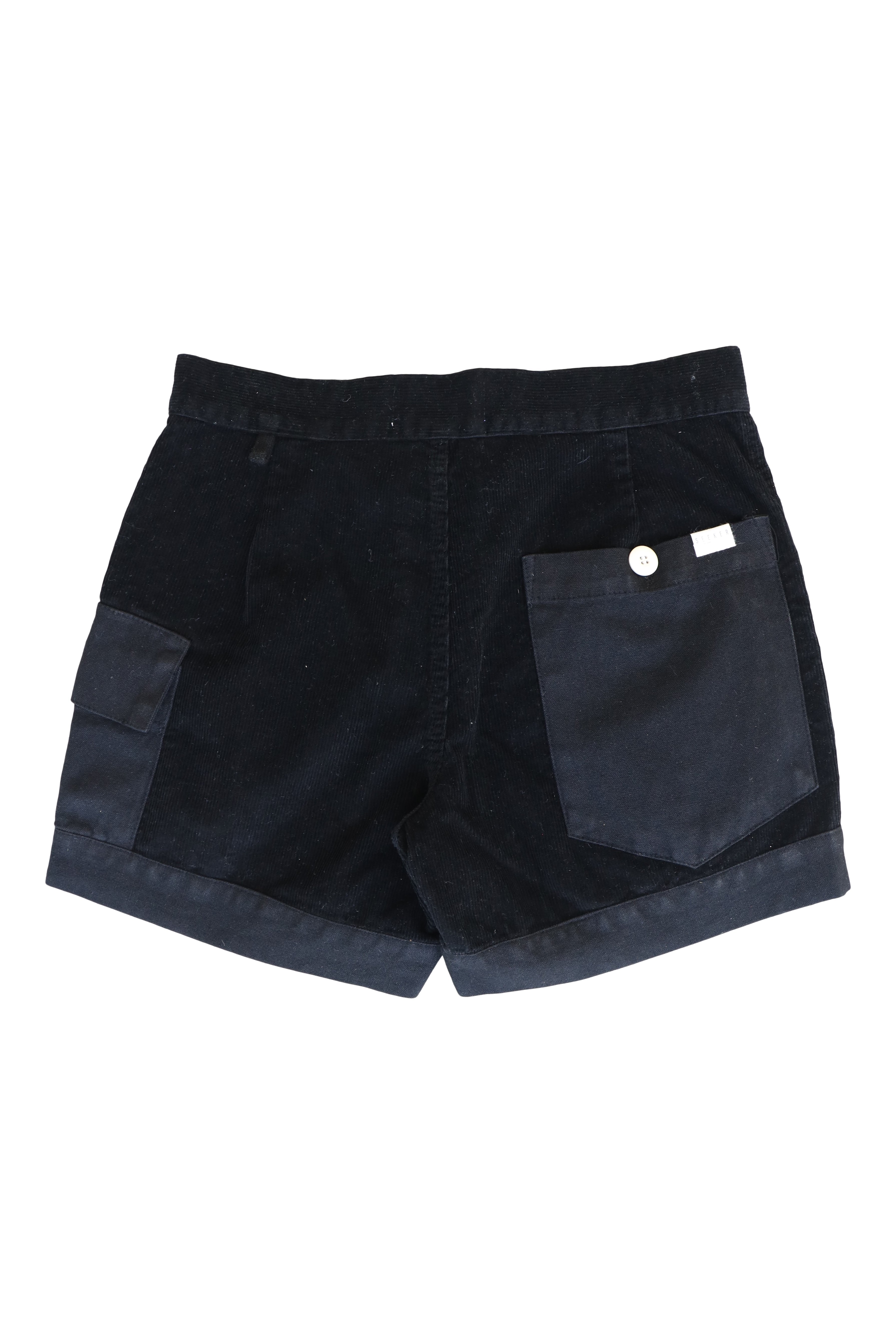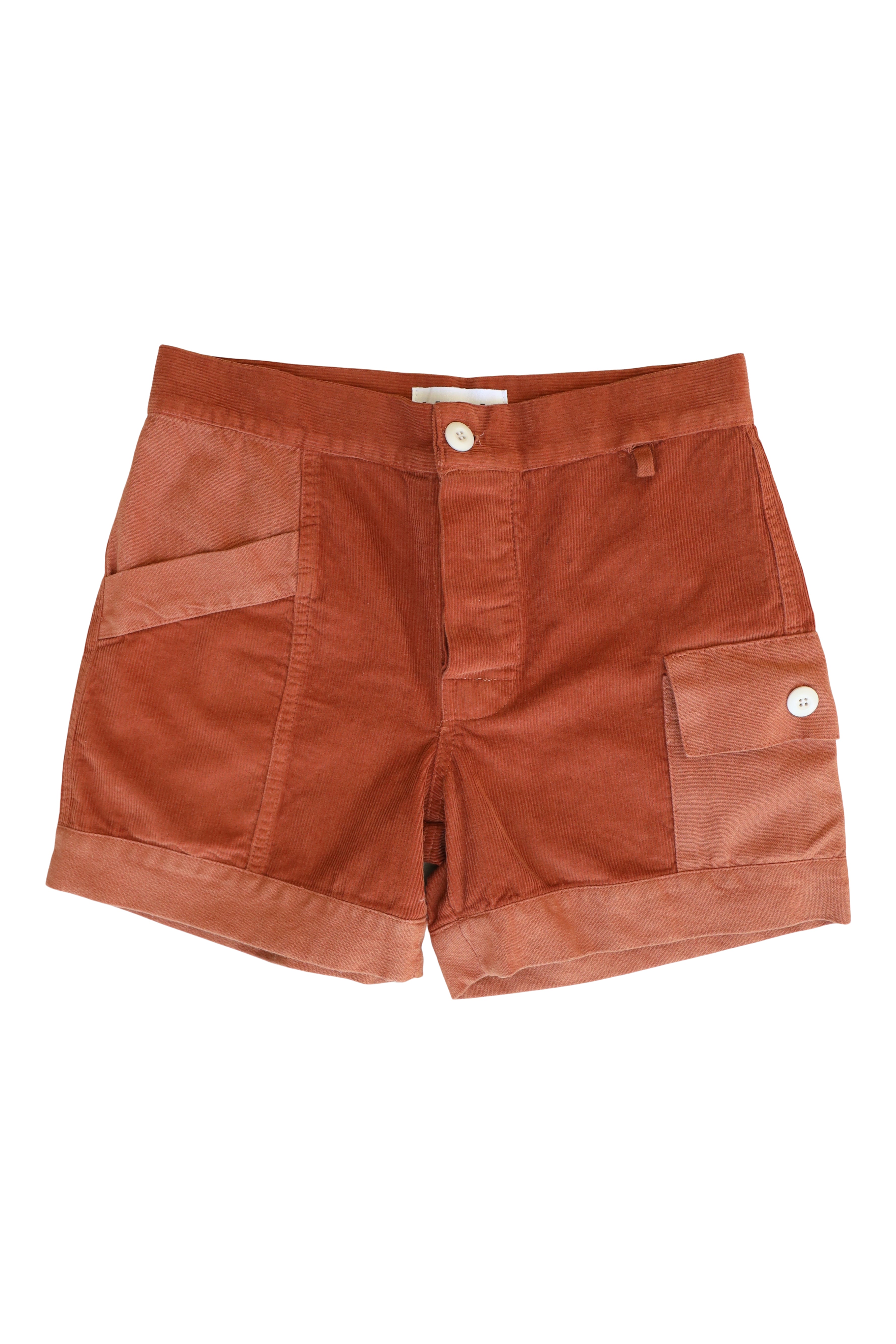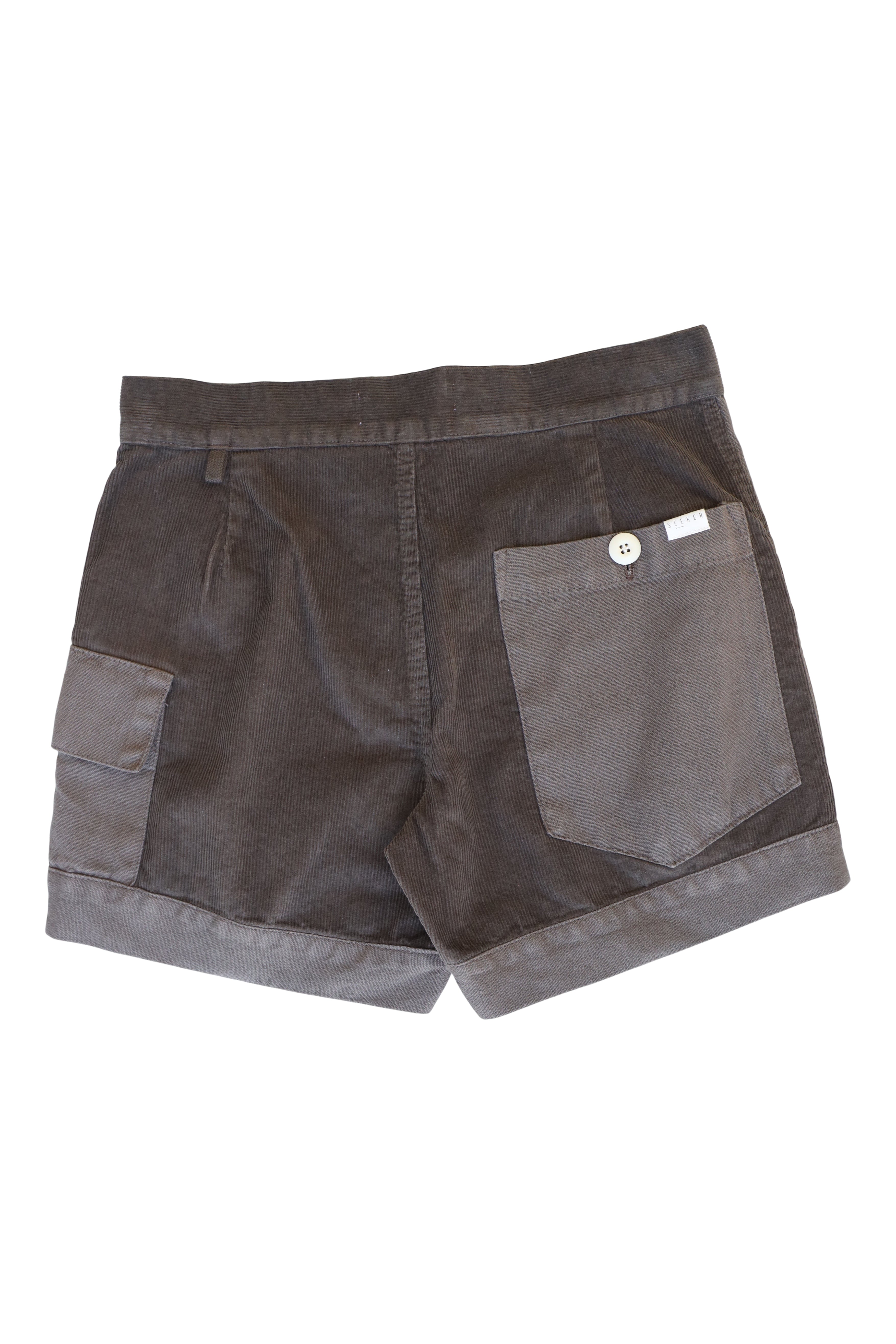 Unisex, organic, sustainably-sourced hemp-cotton blend, lightweight washed canvas Trek Short with contrast corduroy patchwork.