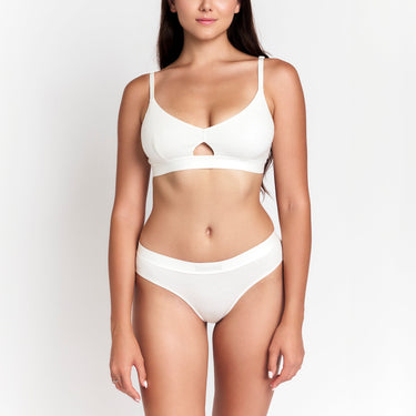 A naturally breathable mid-rise brief designed for soft everyday comfort and gentle coverage, now in Milk.