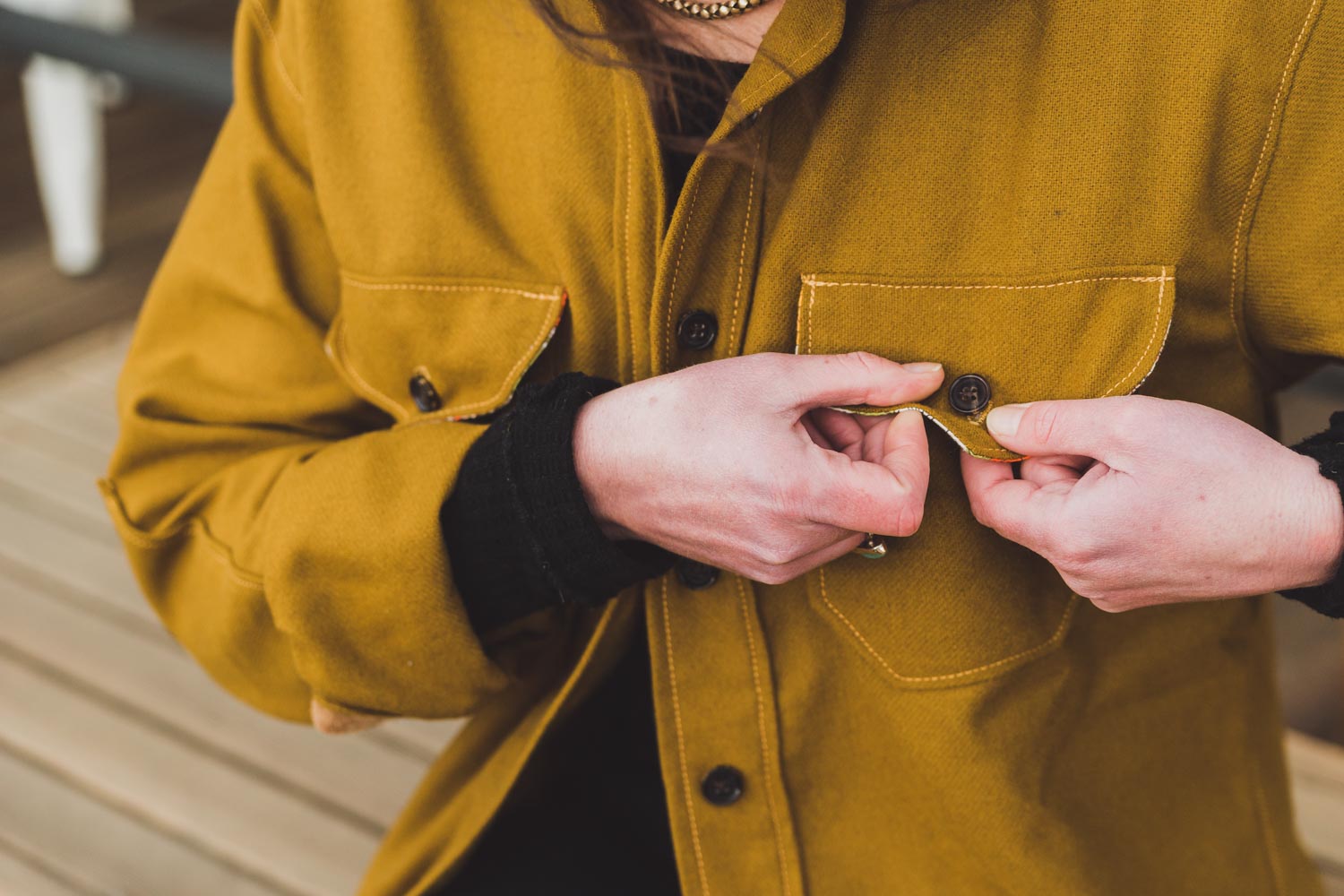 Two miles from shore, the wind kicks up. The island is in sight, and you hunker down and dig in. The spray clings like fuzz as the clouds darken the sky above. Your fingers grip the paddle. Good thing this wool shirt is made to be intentionally reassuring.