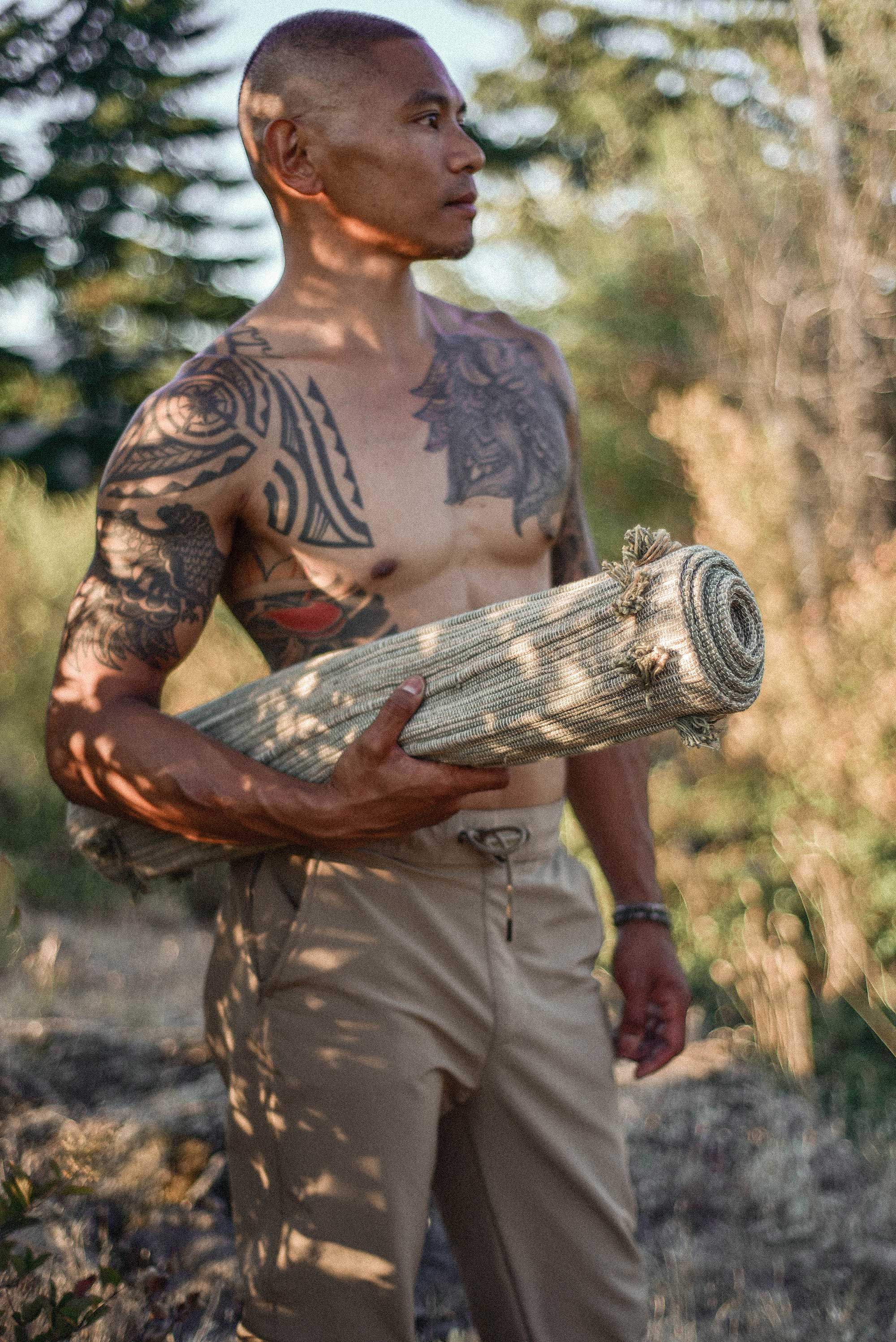 Unleash your potential with our new Jade & Jute Mat! This is our only thicker mat interwoven with jute to amplify your grip power. Herbal dyed with medicinal Ayurvedic plants and ethically hand-loomed with GOTS certified cotton. You will love the soft, cushy feel and natural beauty of this mat. Includes a FREE case and wildcrafted soap nut laundry detergent.